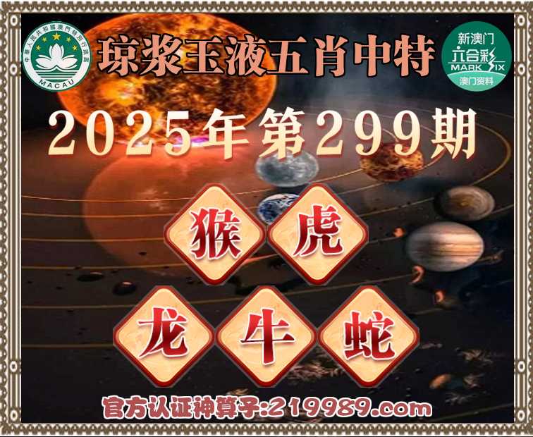 299期: 🥧《琼浆玉液》 🥧五肖中特🥧【猴.虎.龙.牛.】开:蛇49