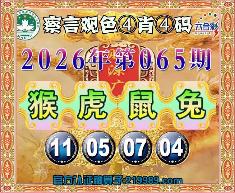 065期:【察言观色】 🥉④肖④码🥉【猴鼠兔】【11.05.07.04】开:虎05