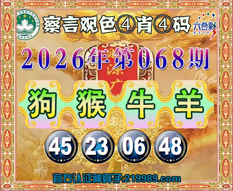 068期:【察言观色】 🥉④肖④码🥉【狗牛羊】【45.23.06.48】开:猴23